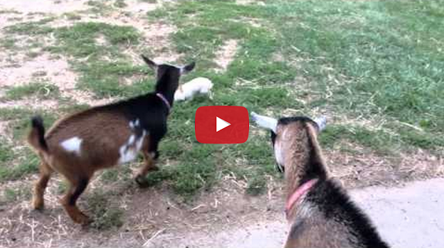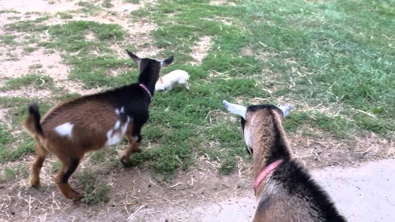 Tiny Chihuahua Puppy Really Wants to Play with Goats