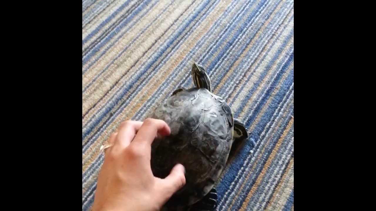 This cute red-eared slider turtle does a little shimmy and shake dance every time his owner gently scratches his shell.