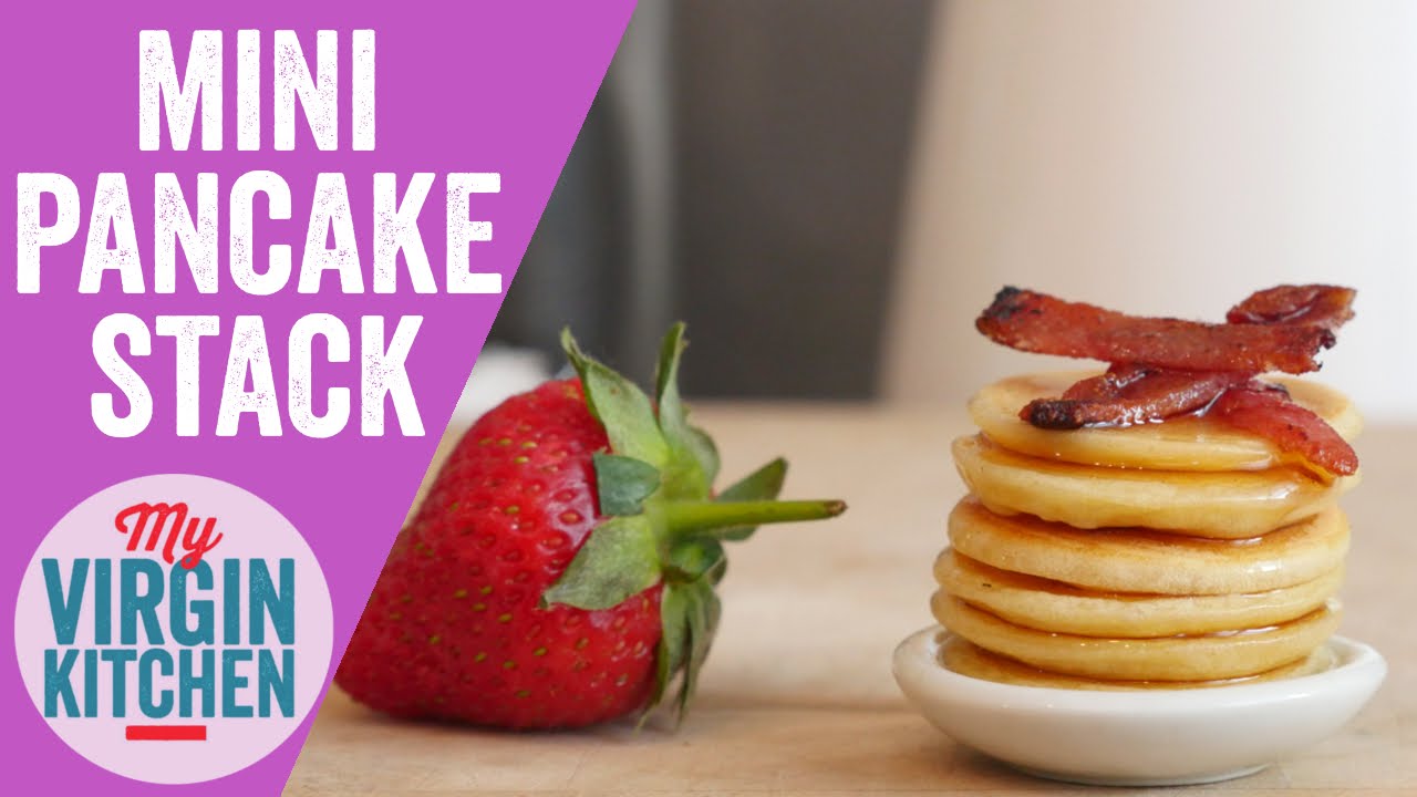 British chef Barry Lewis from My Virgin Kitchen demonstrates how to make a mini stack of pancakes, and mini slices of bacon, with help from his daughter, Chloe.