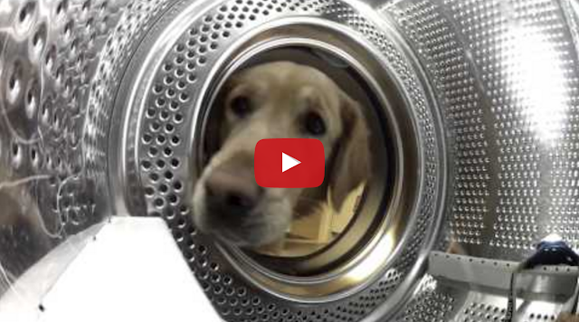 To demonstrate his golden retriever’s strong infatuation with her teddy bear, Simon Bromfield set up a little sting operation to capture footage of the cute dog liberating the freshly washed bear from of the washing machine.