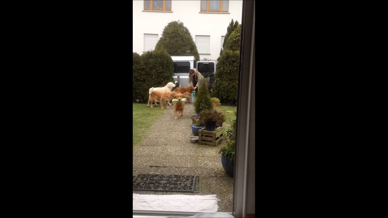 These cute golden grocery retrievers happily bring in groceries when their humans get home from the store, although some are more eager to help than others.