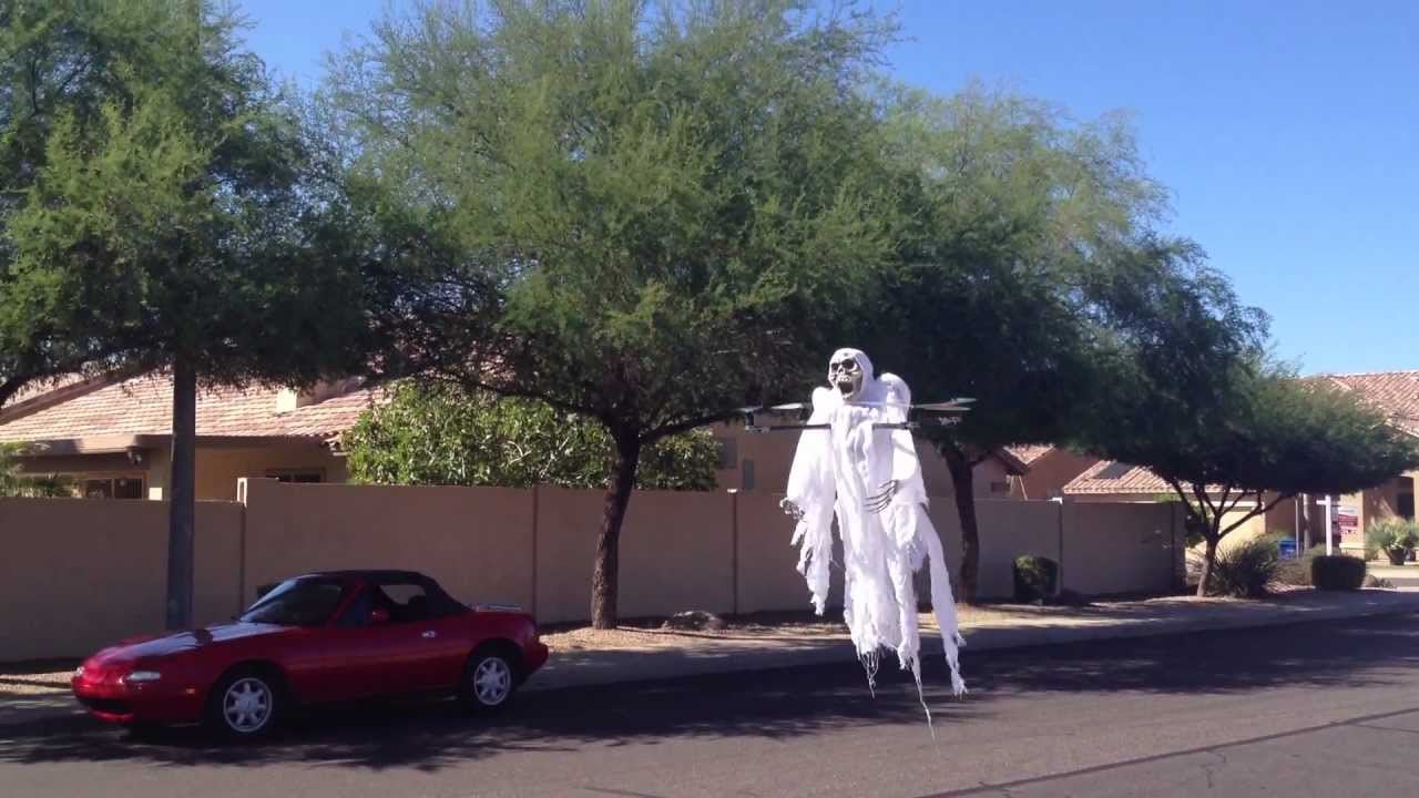 YouTube user AZChopperCam shows off the spooky flying skeleton ghost prop he created using a MiKroKopter quadcopter.