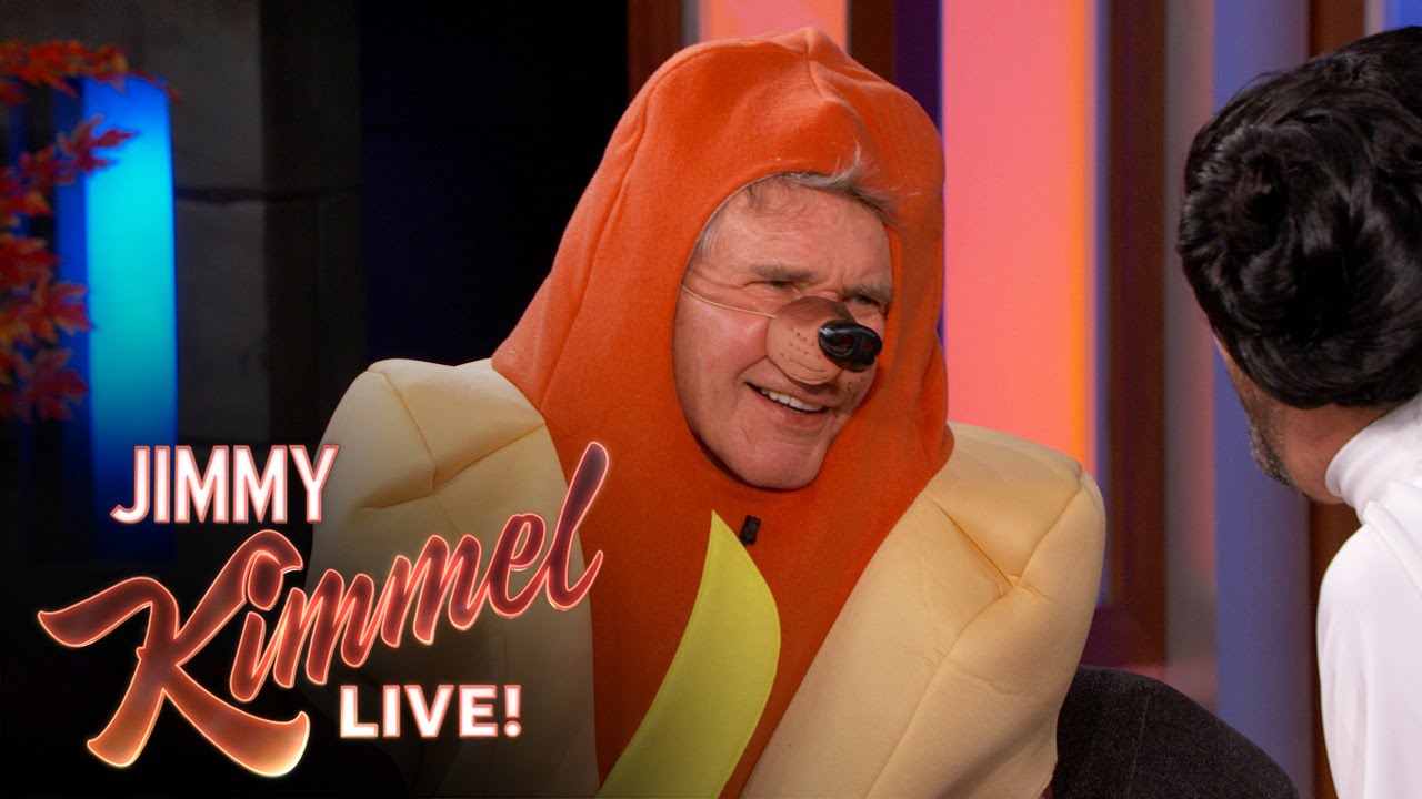 In this clip from a recent episode of Jimmy Kimmel Live, actor Harrison Ford discusses the upcoming Star Wars sequel Star Wars: The Force Awakens, and working with directors George Lucas and J.J. Abrams, while wearing a hot dog costume.