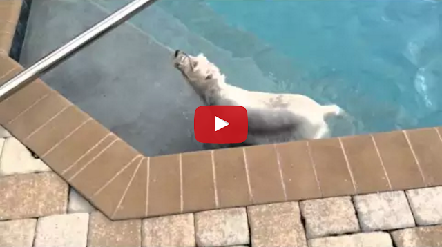 Christy, the West Highland White Terrier, can’t contain her excitement when she gets reunited with “her” swimming pool in Florida.
