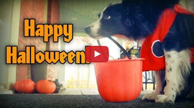 Nana, the super smart border collie, goes trick-or-treating for Halloween, but before she gets her treats, she has to earn them with a few tricks.