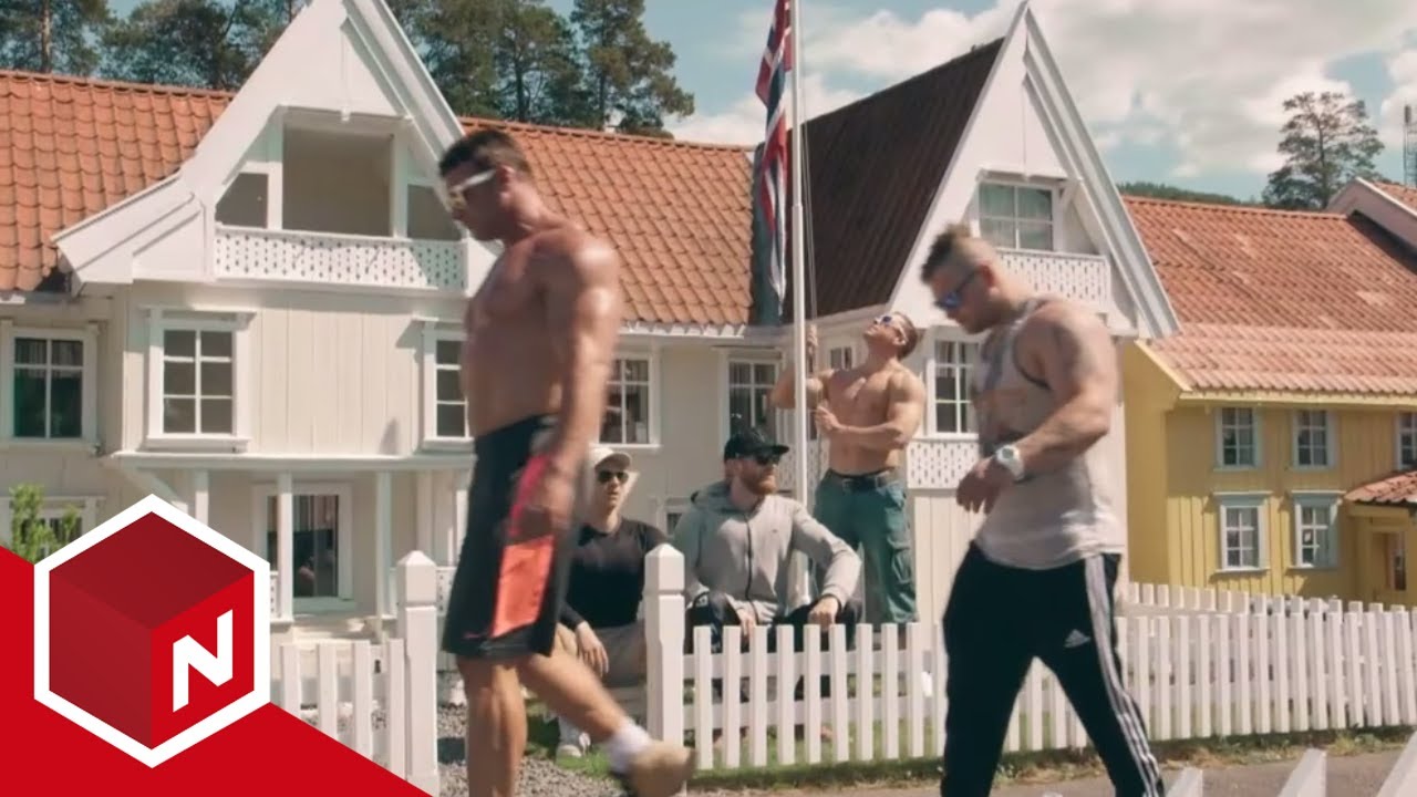 In this skit from the Norwegian comedy show En Helt Vanlig Dag (Just Another Day), a group of bodybuilders visit the miniature town at the Lilleputthammer amusement park in Øyer, Norway as a way to appear bigger and boost their self-esteem.