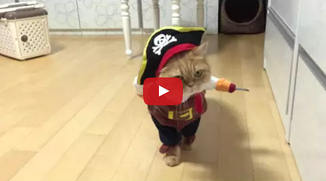 Ahoy, scurvy landlubbers! Prepare to have yer timbers shivered by Zeon, the ginger tabby cat, and his new pirate Halloween costume.