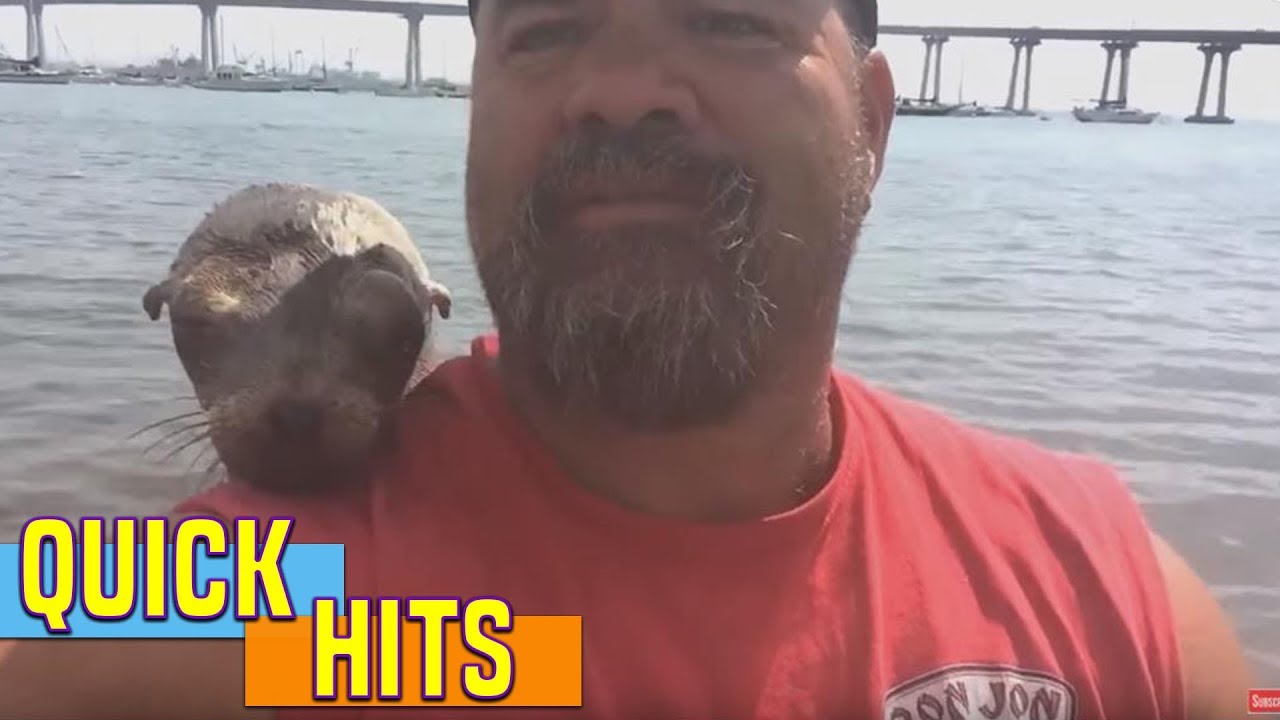 Sea Lion Cuddles with Guy After Climbing Onto His Boat