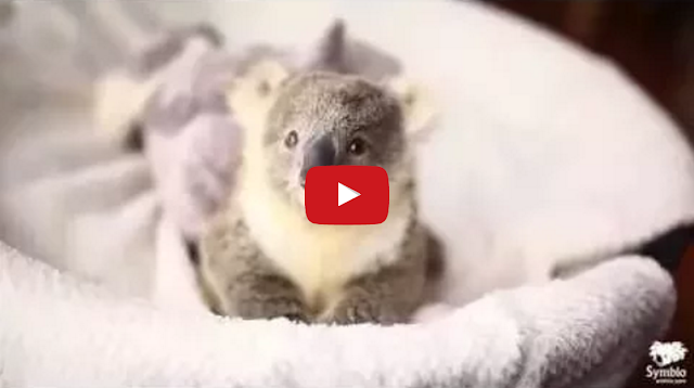 Imogen, the 10-month-old baby koala joey, from Symbio Wildlife Park in Sydney, Australia adorably hangs out in a baby basket while having her picture taken.