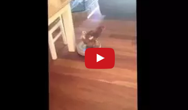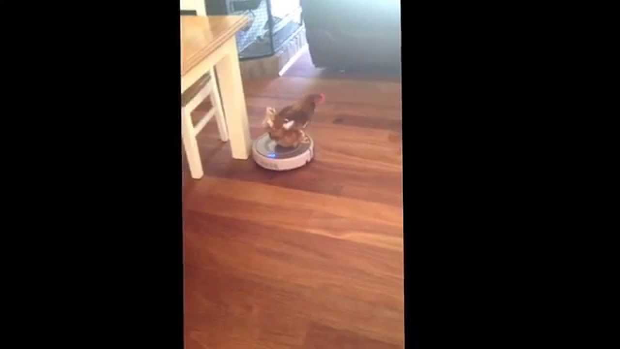 Chicken Has Fun Riding a Roomba