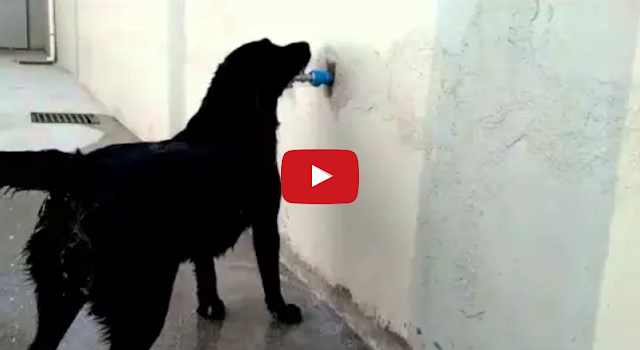 This black lab named Dara from Sao Paulo, Brazil, has figured out how to turn on an outdoor faucet to cool herself off with refreshing showers when the weather gets too hot.