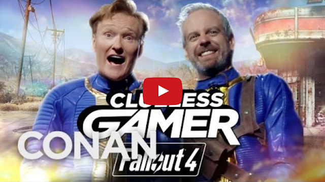 In this episode of Conan O’Brien’s “Clueless Gamer” series, Conan and his friend Aaron Bleyaert play the soon-to-be-released latest installment of the super popular post-apocalyptic video game series, Fallout, while wearing a skin-tight Vault Suits.