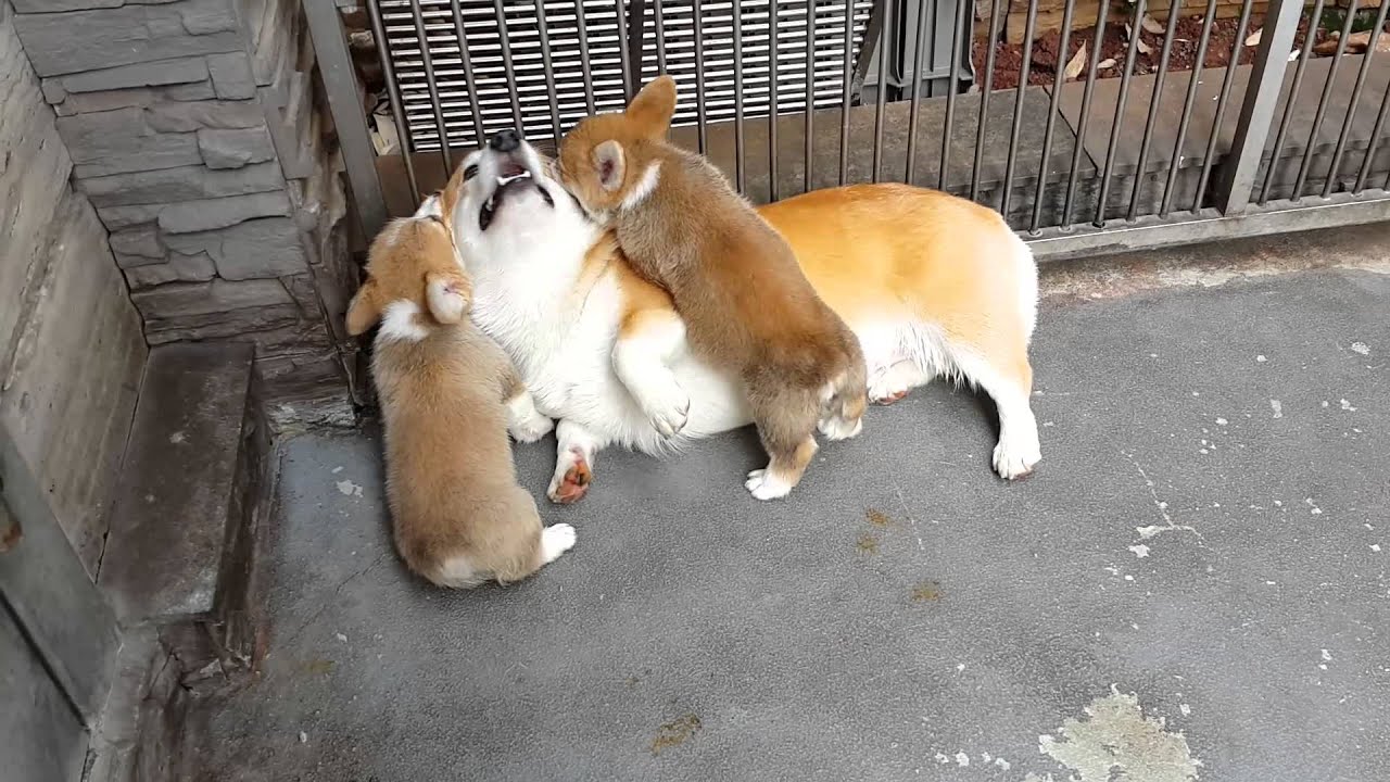 Corgi Teaches Corgi Puppy to Sit