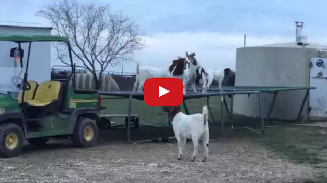 Goats Have Fun Jumping on Trampolines by Tastefully Offensive Six goats on a farm keep themselves entertained by taking turns jumping on two trampolines. [Kyoot Animals]
