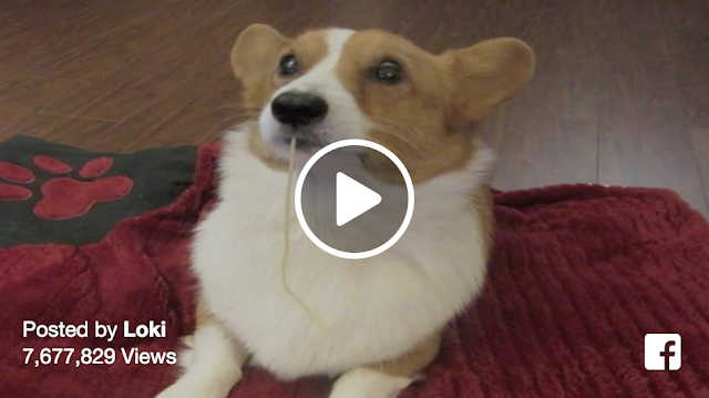 Lonely Loki, the corgi, longs for a Lady of his own while watching the classic spaghetti scene from Disney’s Lady and the Tramp.