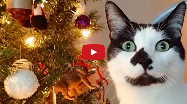Cats Shorty (black) and Kodi (black and white) demonstrate behaviors that basically prove cats know there really is a Santa Claus.