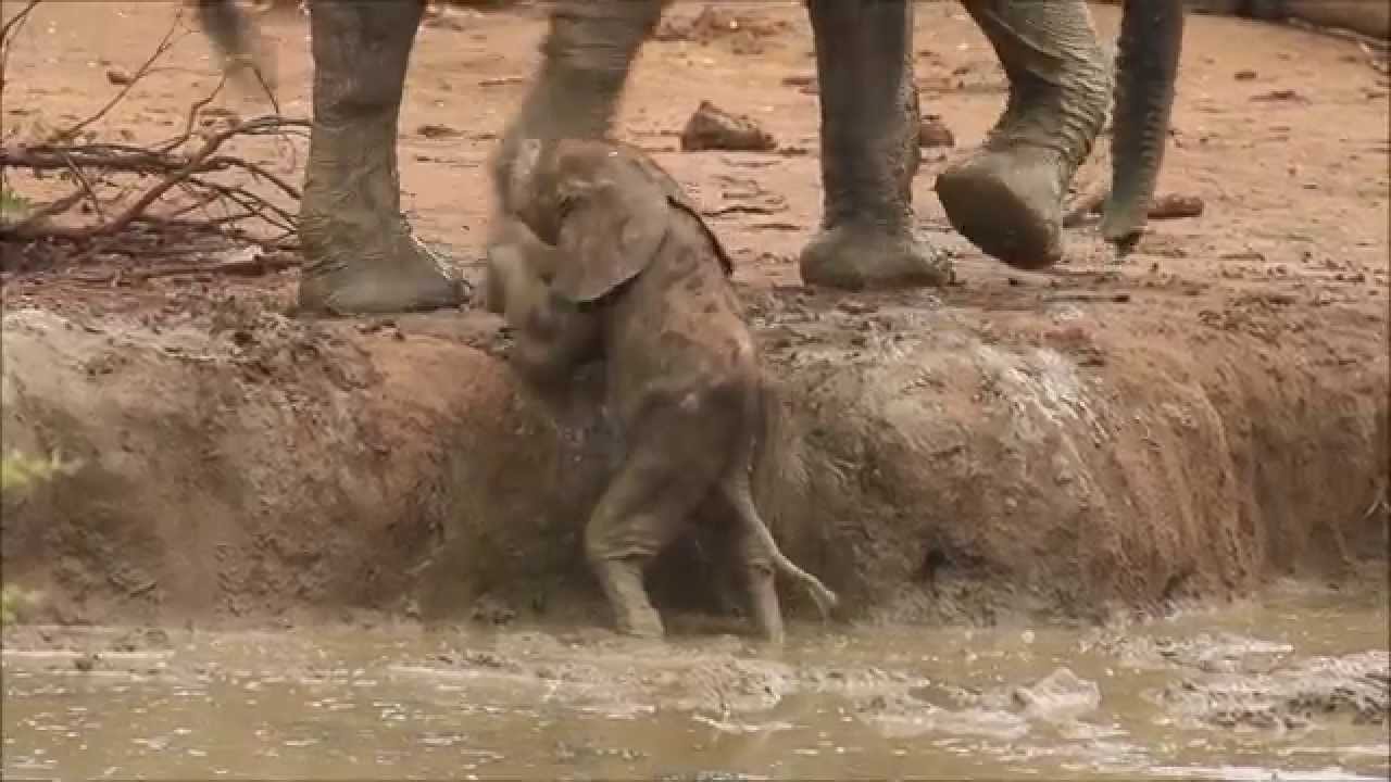 Adult Elephants Rescue Baby Elephant From Mud Pit