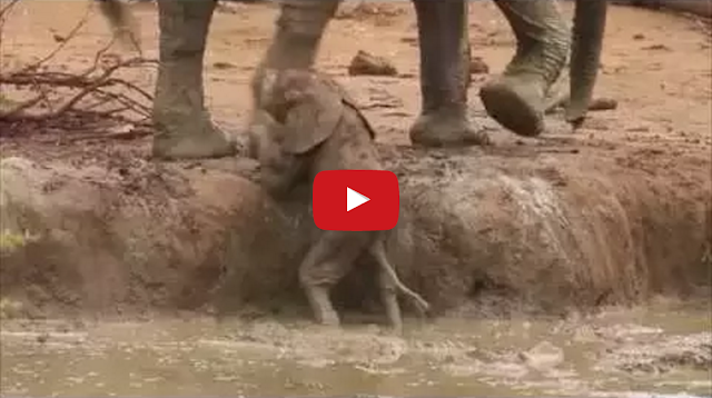 Adult Elephants Rescue Baby Elephant From Mud Pit