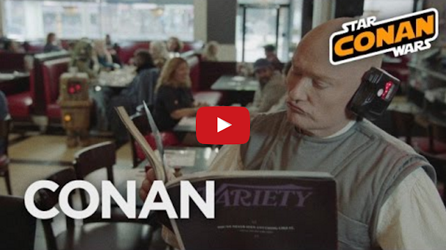For tonight’s special Star Wars-themed episode of Conan, host Conan O’Brien kicks off the show with a funny sketch involving characters from the original Star Wars trilogy, like Jango Fett, Bib Fortuna, Oola, who are a little bitter about not getting cast in J.J. Abram’s new Star Wars sequel, Star Wars: The Force Awakens.