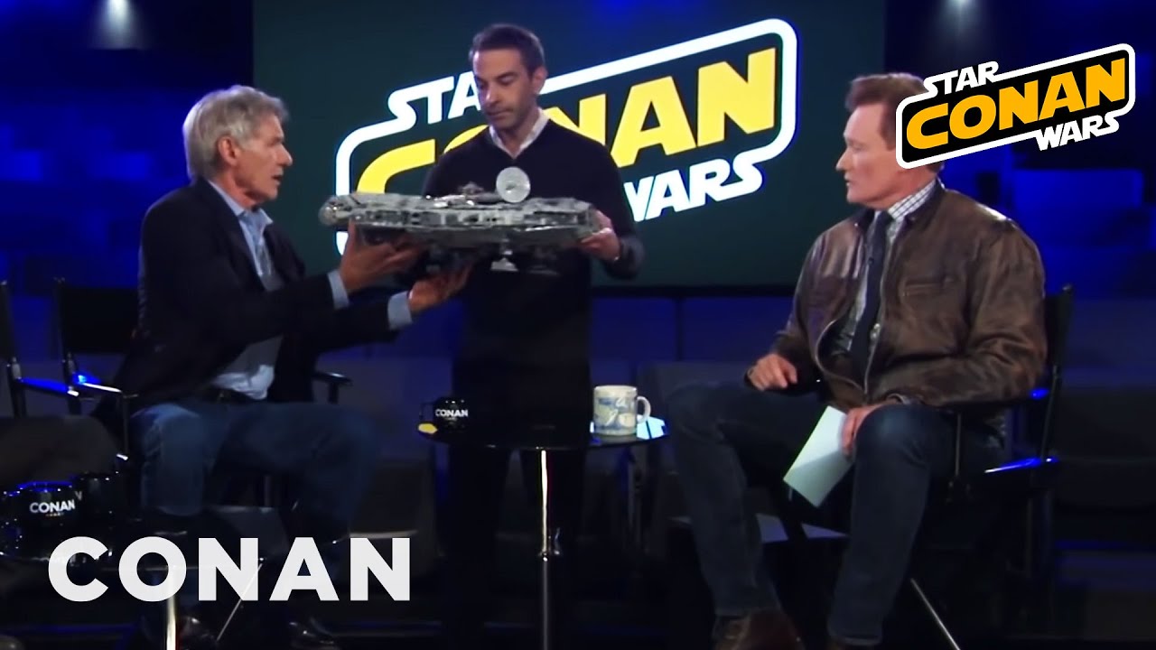 Conan O’Brian gives his famously quirky associate producer, Jordan Schlansky, the opportunity to ask Han Solo himself, Harrison Ford, to sign his rare LEGO Millennium Falcon.