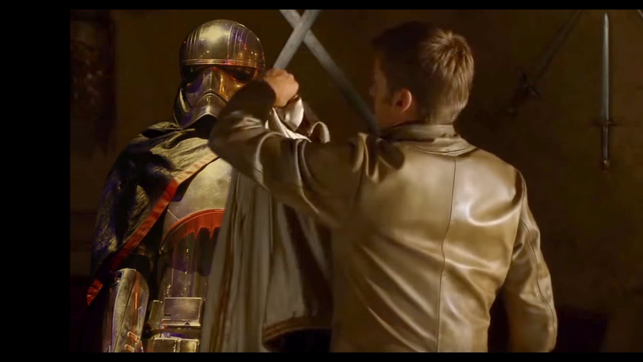 YouTube user Level Lord cleverly edited a scene of Brienne of Tarth (Gwendoline Christie) in season four of HBO’s Game of Thrones to explain how Captain Phasma (also Gwendoline Christie), from Star Wars: The Force Awakens, got her epic chromium Stormtrooper armor.