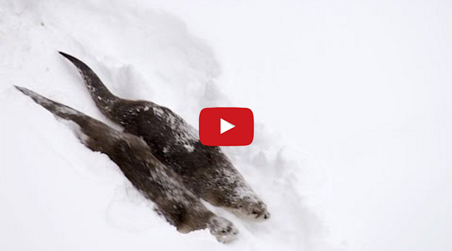 In this clip from the upcoming National Geographic special, Wild Yellowstone: The Frozen Frontier, a mother river otter and her cute pup slide down a snow-covered mountain slope on their bellies to reach their fishing spot.
