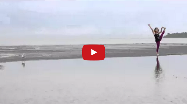In this short video by Angus Bohanon, a cheeky seagull at the beach appears to mimic girl’s standing leg raise yoga pose.