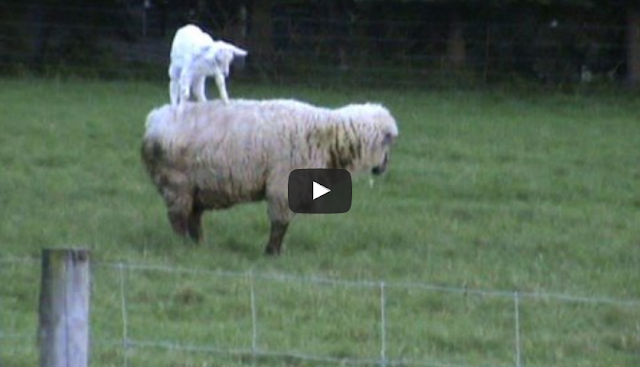 Baby Goat Climbs on Sheep’s Head
