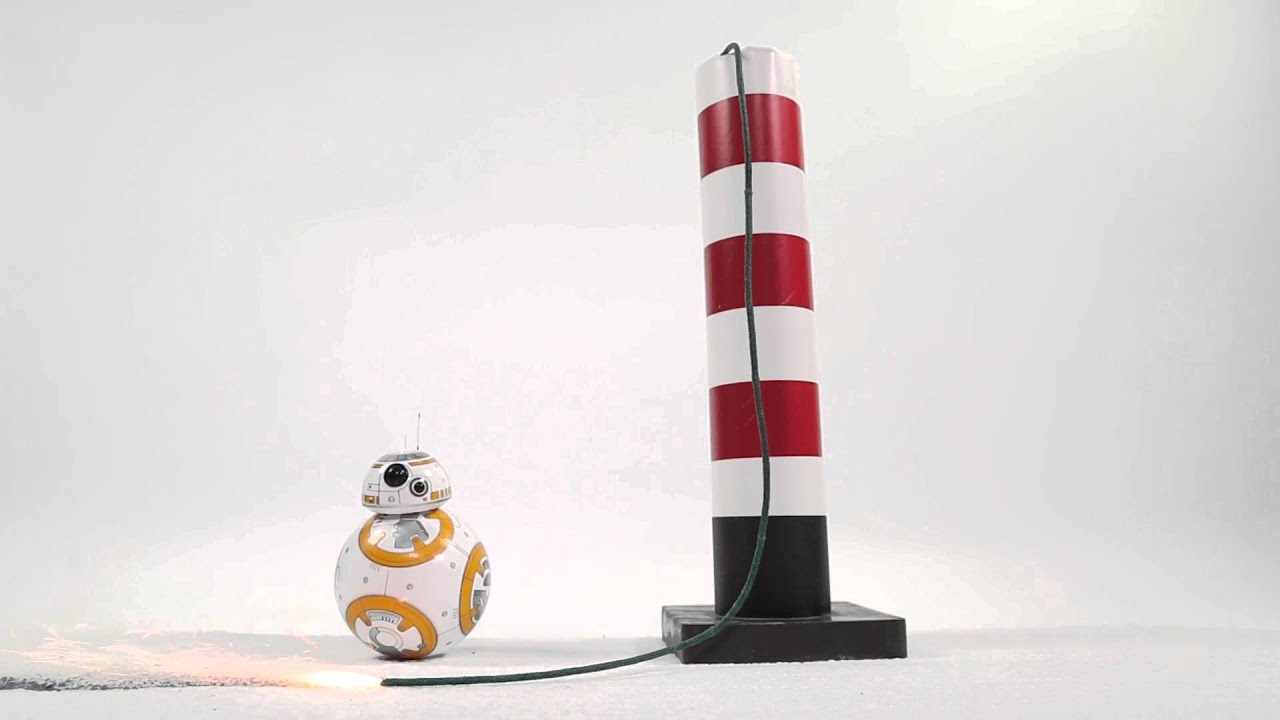In the latest video from Sphero, their mini toy replica of the inquisitive and adorable BB-8 droid from Star Wars: The Force Awakens investigates a burning fuse.
