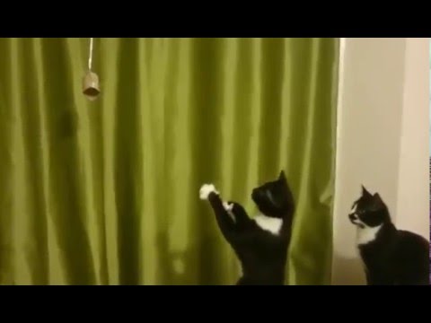 Cat Tries to Grab Dangling Object That’s Too Far Away