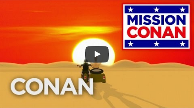 Late-night talk show host, Conan O’Brien, uses high tech 3D animation to retell what happened during his recent journey to Al Udeid Air Base, in Doha, Qatar, with First Lady Michelle Obama.