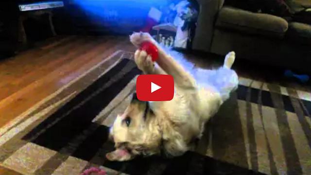 Debbie Keeton recently discovered that her silly golden retriever dog taught himself how to use his front paws like hands while playing with his toys.