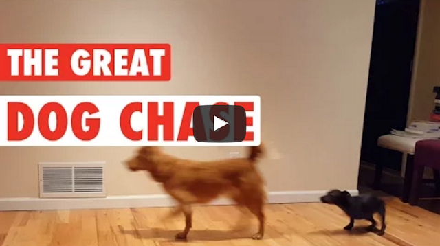 Katie Marshall filmed this cute video of her three dogs, Stella (big), Mannix (medium), and Ricky (small), chasing each other in an effort to gain and maintain possession of their coveted bone toy.