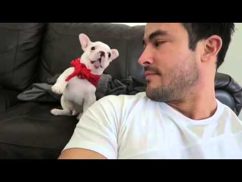 This sassy little French bulldog puppy, named Link (aka Stinky Linky), knows he looks adorably dapper in his new red bandanna.