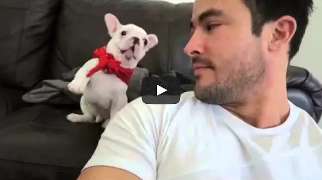 This sassy little French bulldog puppy, named Link (aka Stinky Linky), knows he looks adorably dapper in his new red bandanna.