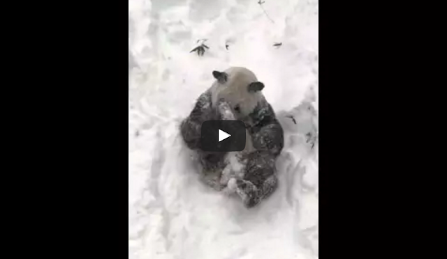 Giant Panda Has Fun Frolicking in Fresh Snow
