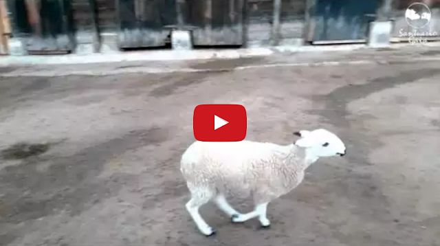 This dog-like lamb, named Birgit, excitedly runs and hops around (and head-butts a pig) while playing with the staff at the Gaia Animal Sanctuary in Camprodon, Spain.