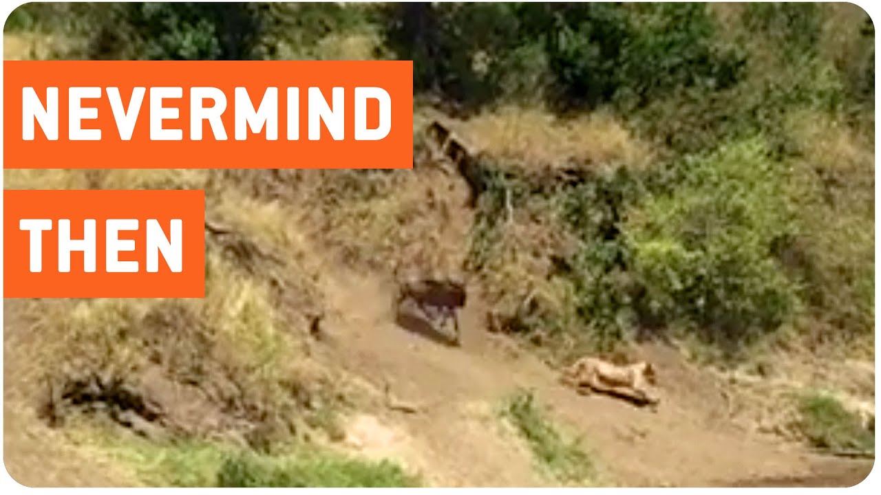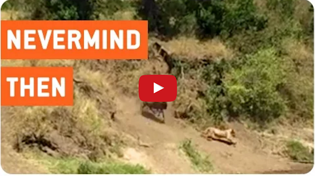 While visiting the Maasai Mara National Reserve in Kenya, Africa, Carter Harrell filmed this amusing video of a lion and wildebeest taking turns being the chaser and chasee (it would be nice to know what went down around that corner).