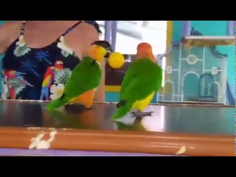 While visiting St. Thomas in the Virgin Islands, Donald Almanza filmed these cute caique parrots playing a competitive game of one-on-one basketball.