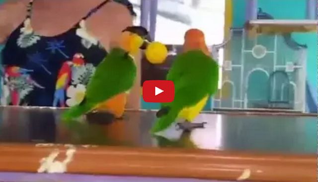 While visiting St. Thomas in the Virgin Islands, Donald Almanza filmed these cute caique parrots playing a competitive game of one-on-one basketball.