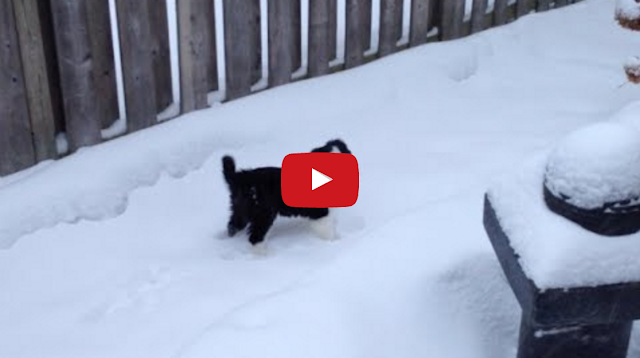 Border Collie Puppy Clumsily Plays in Snow for the First Time
