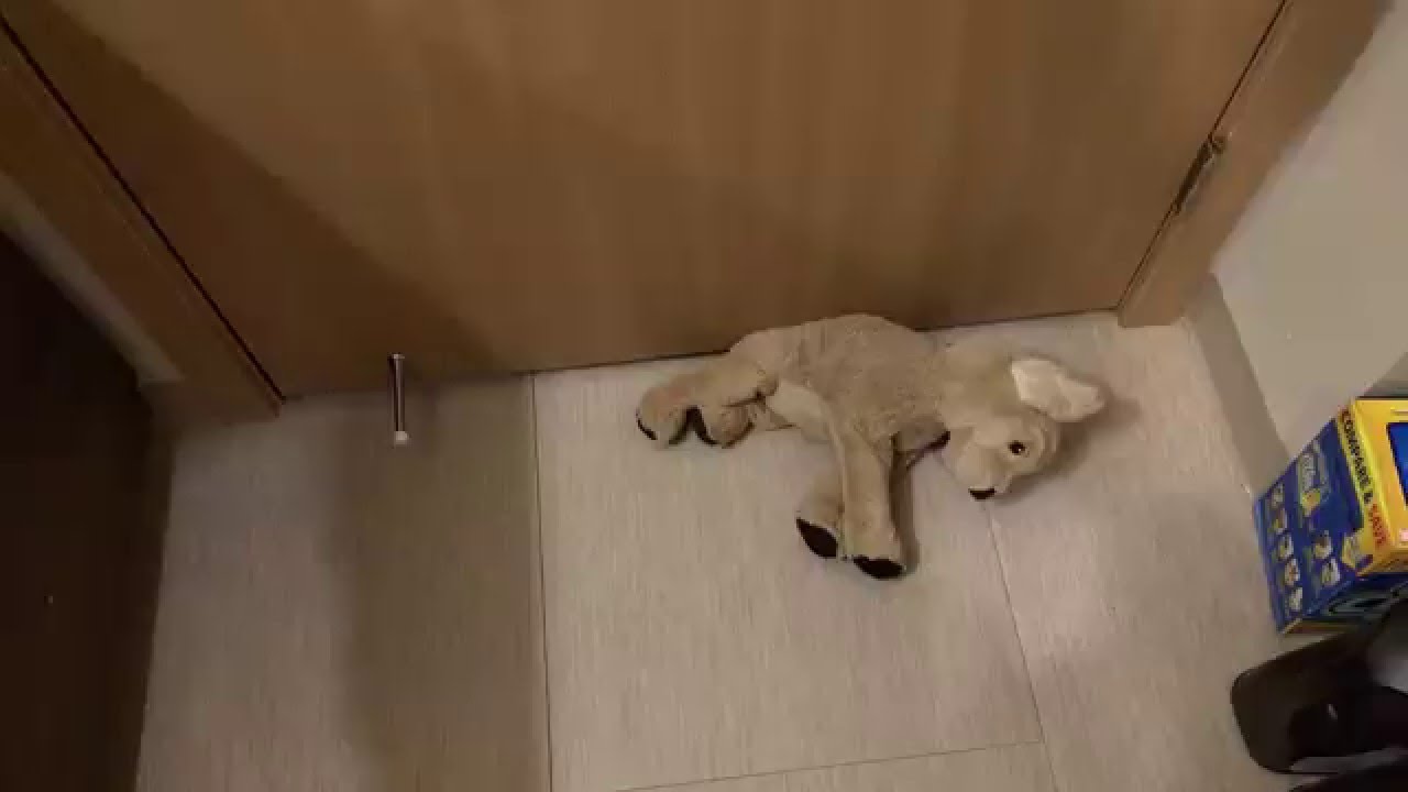 Determined Dog Pulls Stuffed Dog Toy Under Door