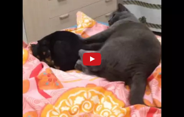 Fat Cat Rudely Rejects Little Dog’s Affection