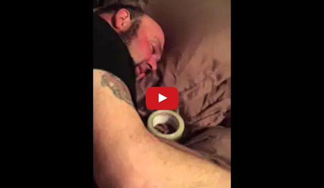 While high on anesthesia after a trip to the dentist to have some cavity work done, this grown man hilariously sleeps with a roll of tape after convincing himself that his head is going to fall off.