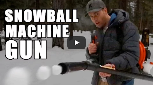 Former Nasa engineer and world’s coolest uncle, Mark Rober, demonstrates how to make a snowball machine gun, that can fire 13 snowballs in .5 seconds, using a landscaping leaf blower and some pipe. You can view a PDF of the detailed instructions here.