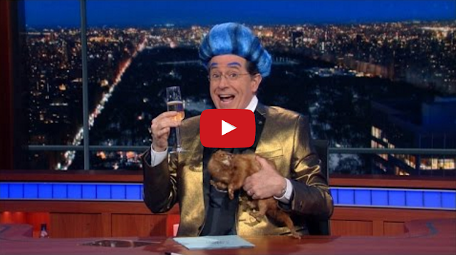 In his recurring “Hungry for Power Games” segment, Late Show host, Stephen Colbert, bids a Hunger Games-style farewell (as Caesar Flickerman) to the latest fallen tributes candidates from the 2016 presidential race, Rick Santorum, Chris Christie, Carly Fiorina, and Jim Gilmore.