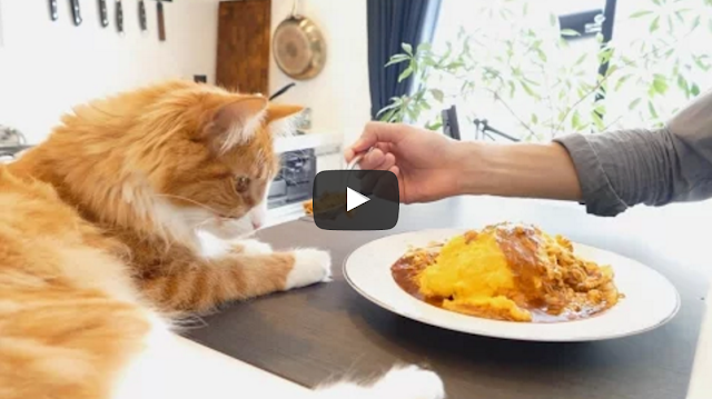 Japanese Chef Makes a Delicious-Looking Rice Omelette While His Loyal Cat Watches Patiently