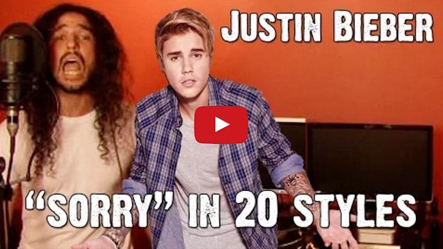 New York-based musician and musical impressionist, Anthony Vincent, of Ten Second Songs performs Justin Bieber’s latest hit, “Sorry,” in twenty famous vocal styles, including Nickelback, U2, Selena Gomez, Kiss, Kanye West, Culture Club, and more.