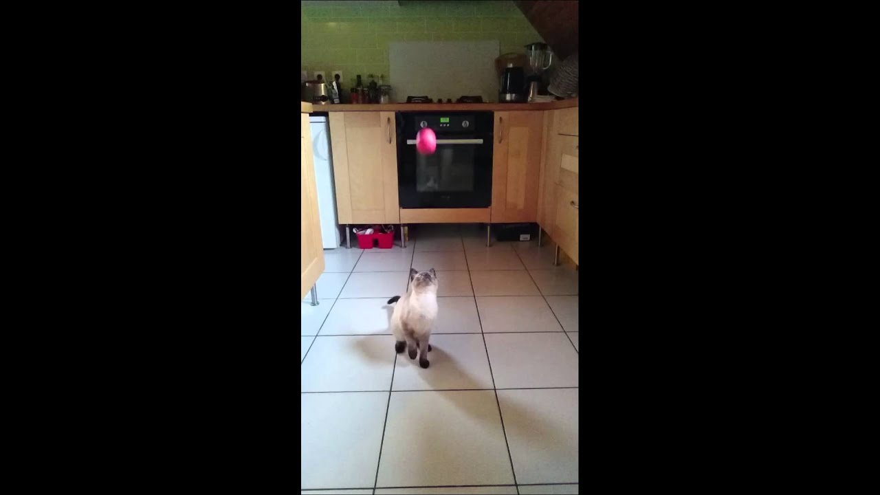 This poor Siamese kitten gets bonked on the nose when he chooses to stare at an incoming ball instead of moving out of its way.
