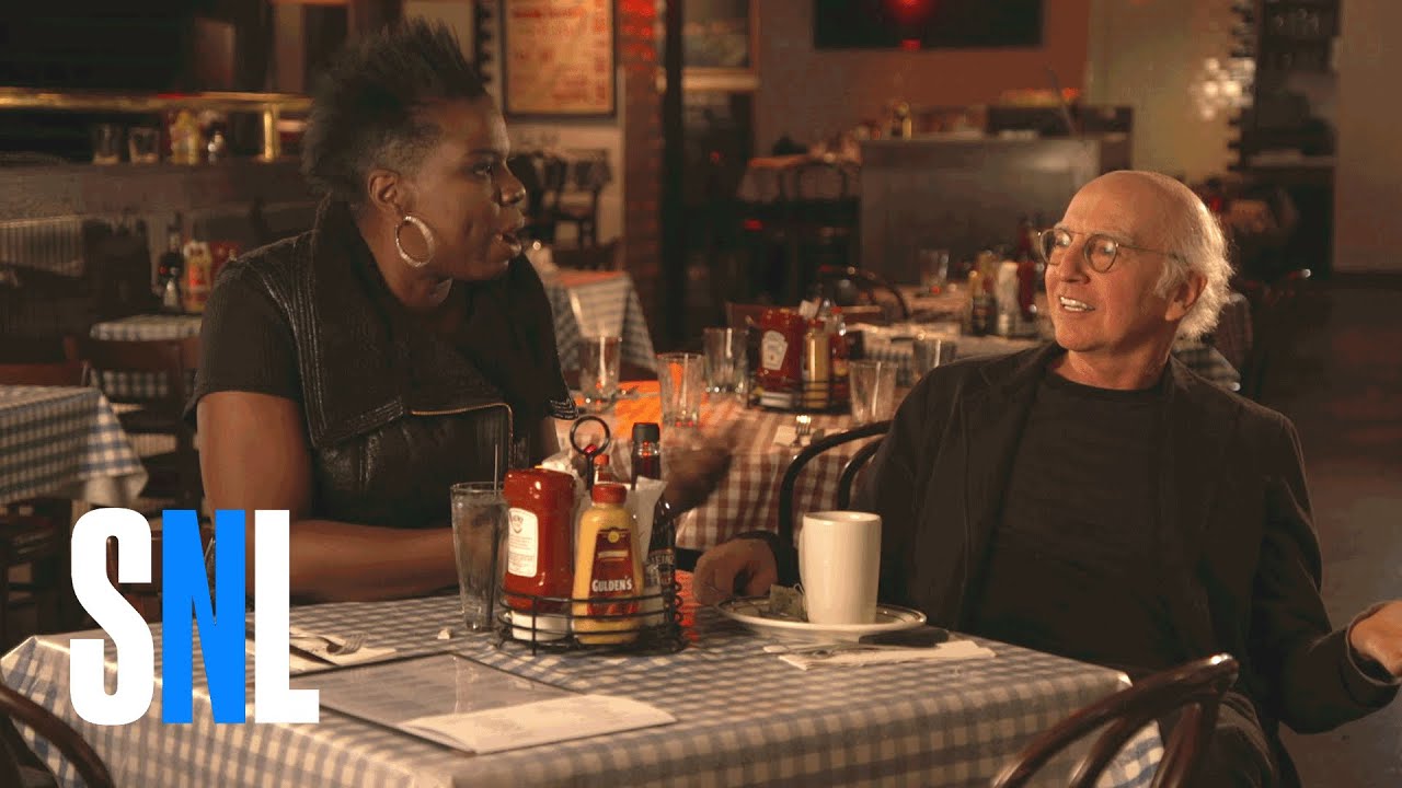 SNL‘s Leslie Jones and actor/comedian Larry David shoot promos to announce that Larry will be the host this week’s episode of Saturday Night Live on February 6th with musical guest The 1975.